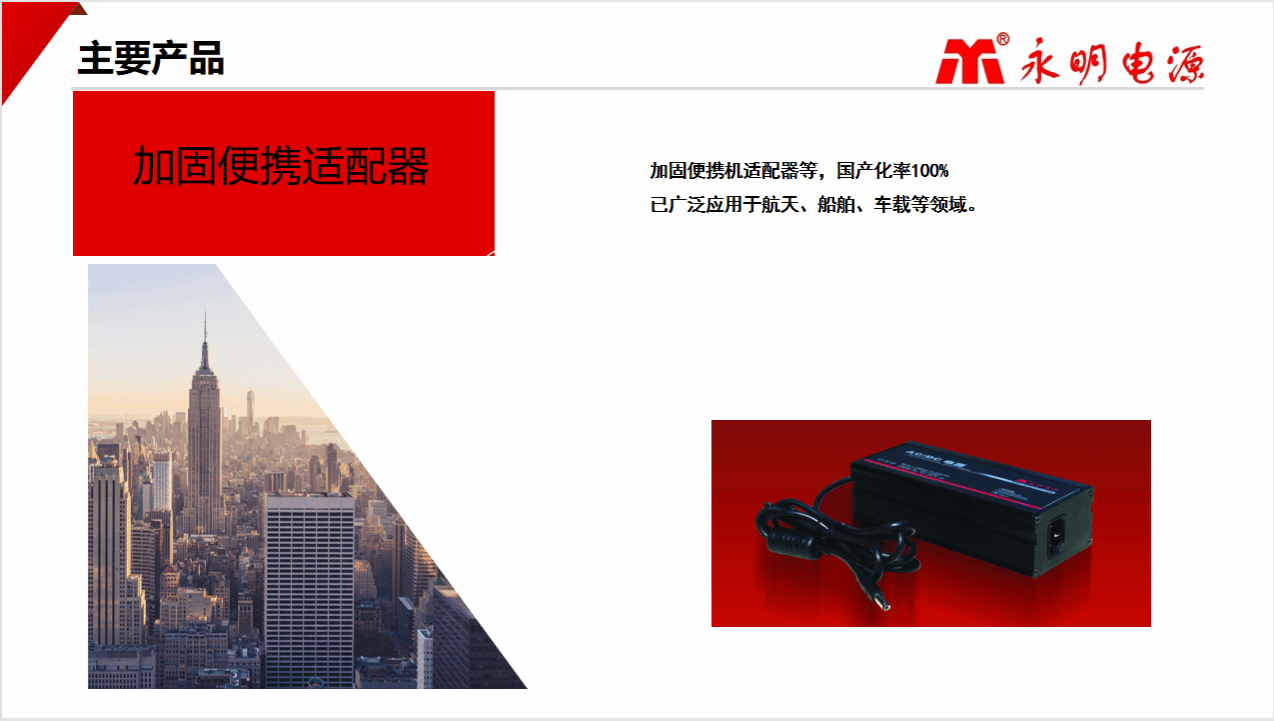 太原永明恒动源电子有限公司成立于1993 年,是专业从事军用及工业电源研发、设计、生产和销售的企业。永明电源品牌历经三十年的持续发展和积累,产品已达到种类齐全、技术领先。其中 VPX系列加固电源、CPCI 系列加固电源、军用 AC/DC、DC/DC模块系列电源、加固便携机适配器等,已广泛应用于航天、船舶、车载等领域。